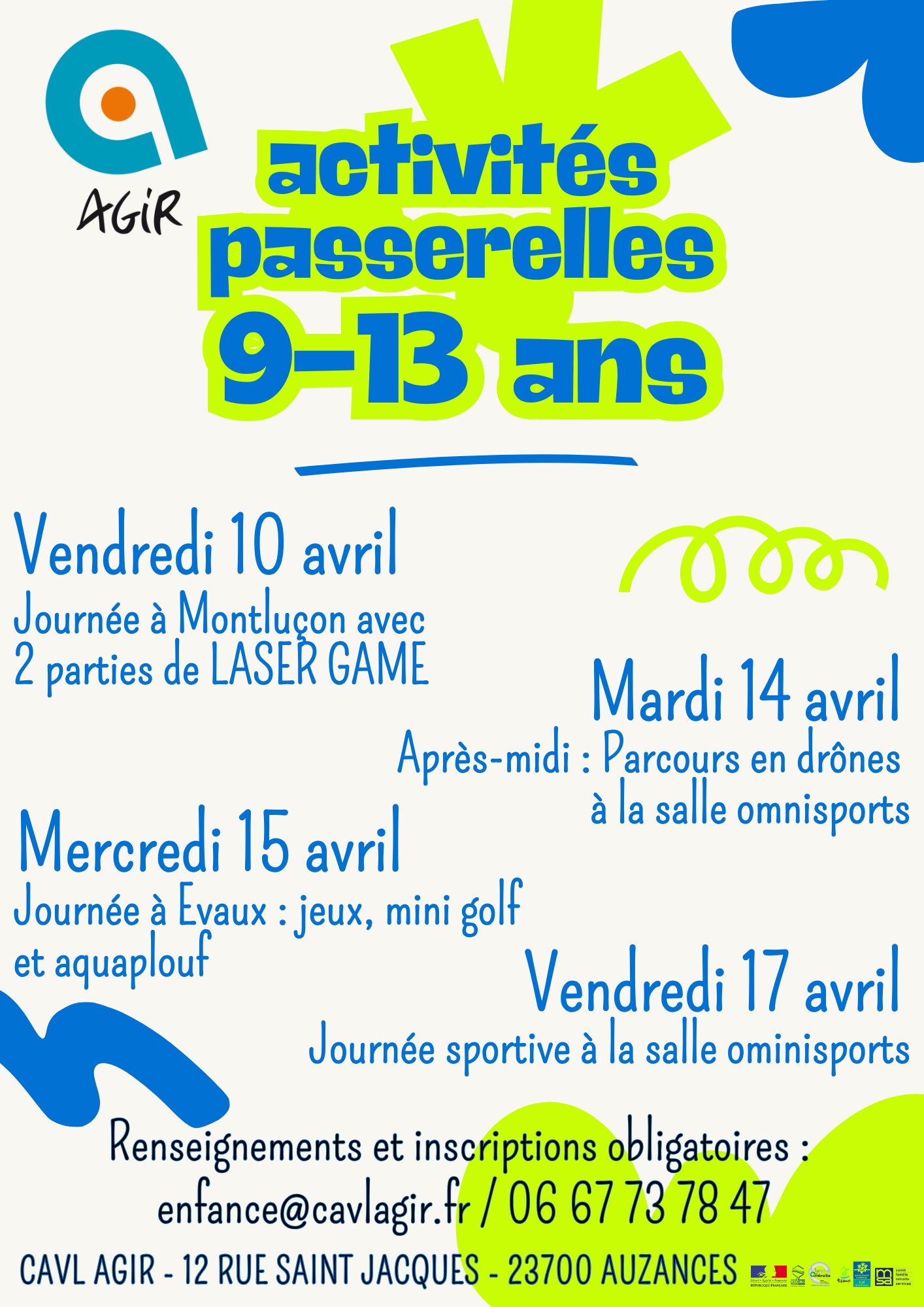 Activités proposées par le CAVL AGIR aux jeunes de 9 à 13 ans pendant les vacances de printemps